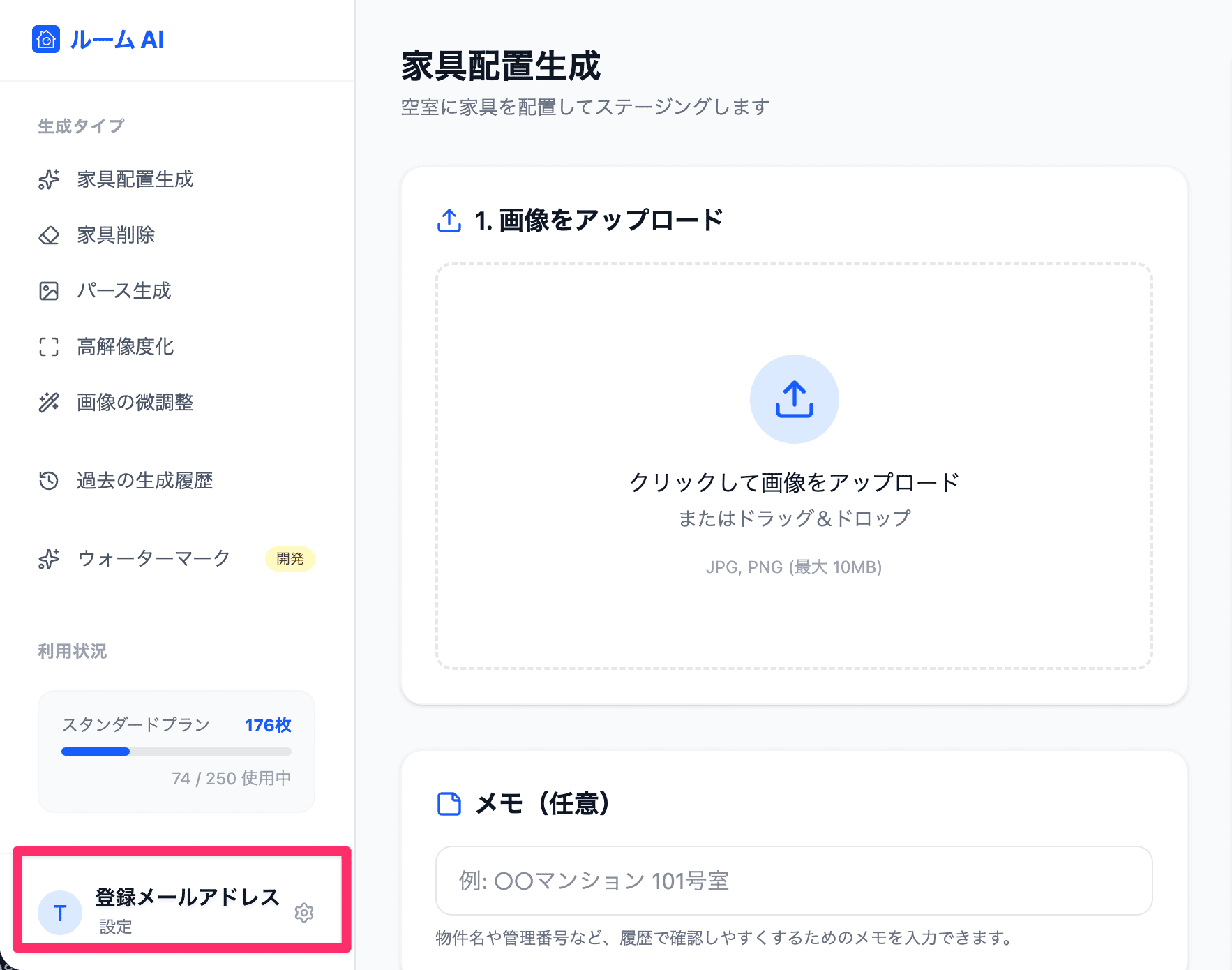 - ルームAIのダッシュボードにログインします。