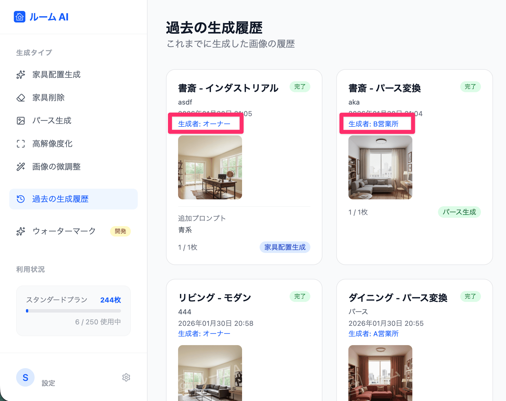 - 画像一覧画面では、「誰が生成した画像か」 が確認できるようになっています。